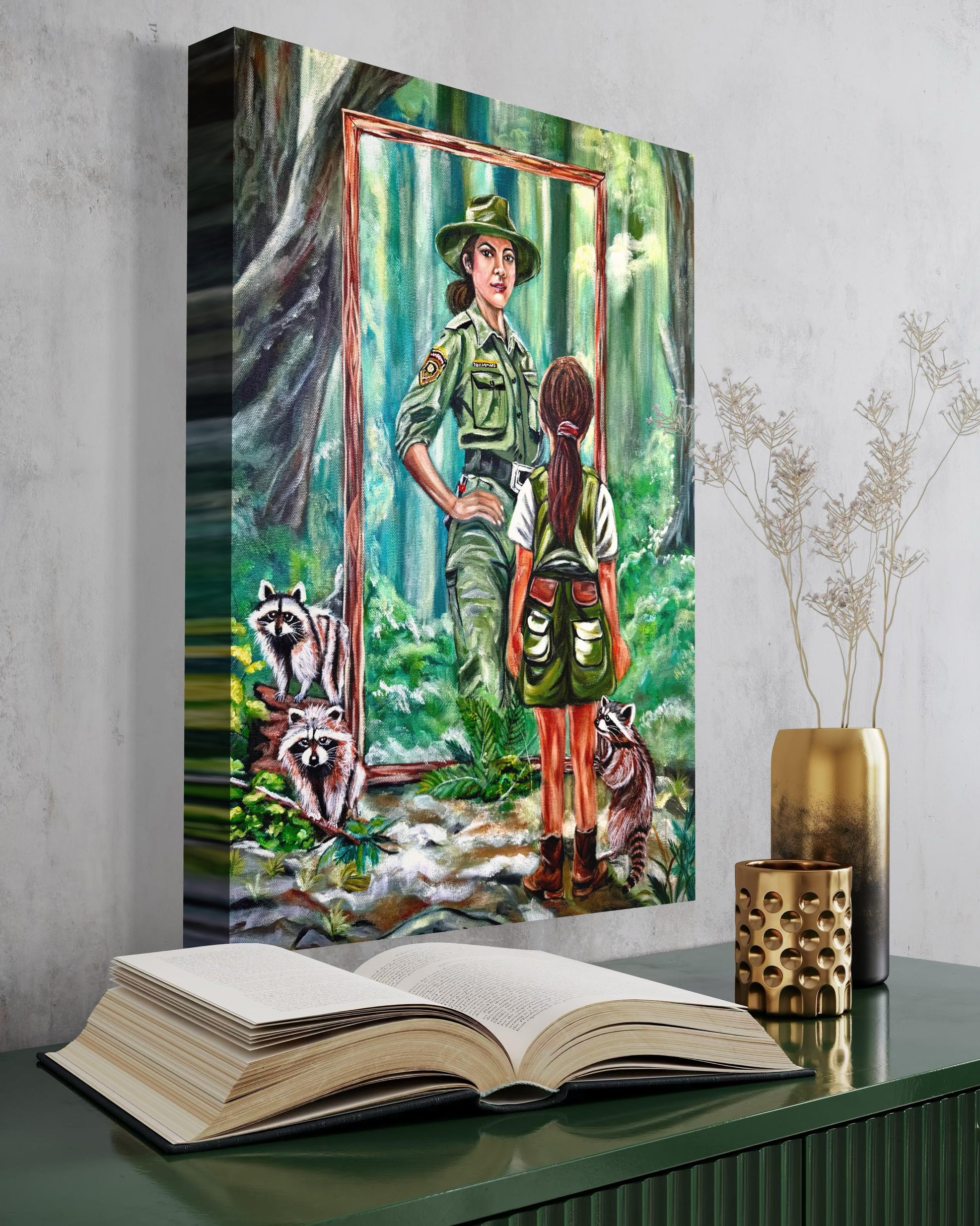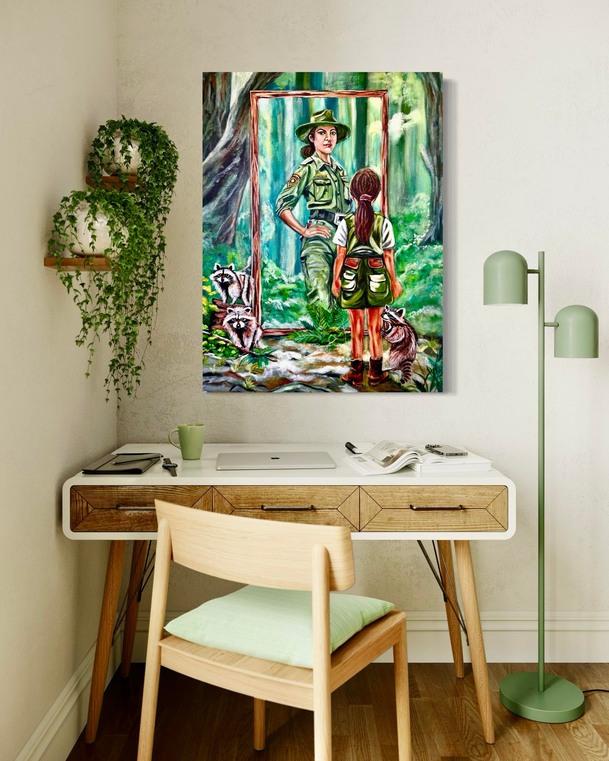 "Earth’s Keeper" captures the essence of a young girl's deep love for animals and nature, reflecting her passion to nurture, protect, and care for the world around her. This painting is more than just art; it’s a heartfelt tribute to her dreams of making a difference. By placing this inspiring piece in her study room or bedroom, you are not only supporting her aspirations but also nurturing her self-belief and confidence.