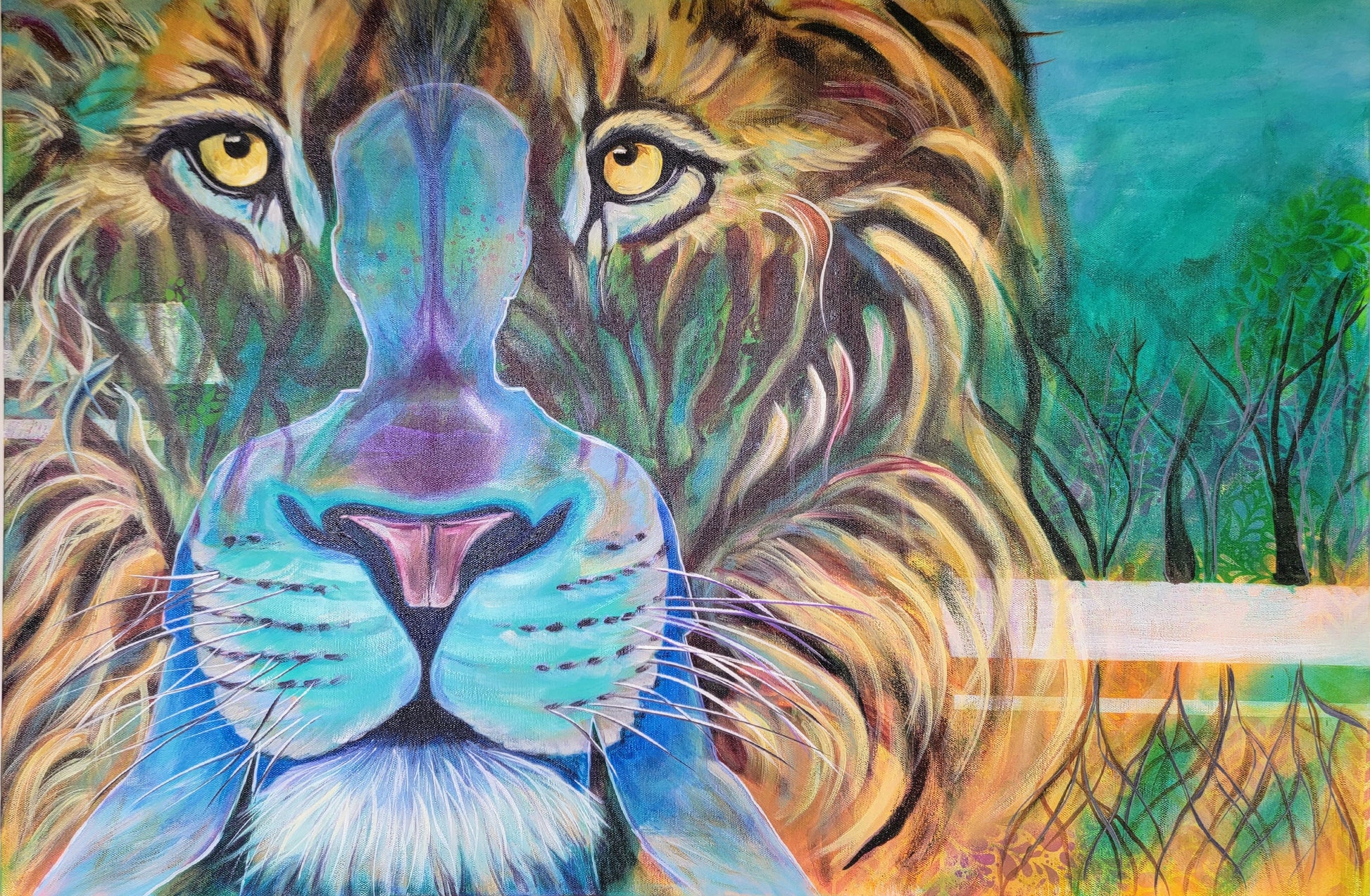 The fusion of the lion and the forest within the meditating man's being symbolizes the profound connection between humans, nature, and the majestic creatures that inhabit it. As the man taps into the depths of his wisdom and courage, he becomes a steward of the wilderness, embracing the role of a guardian for the environment.